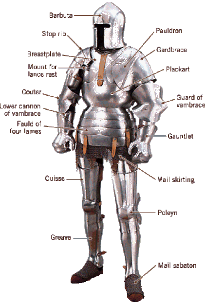 2. Назовите основные элементы рыцарских доспехов.